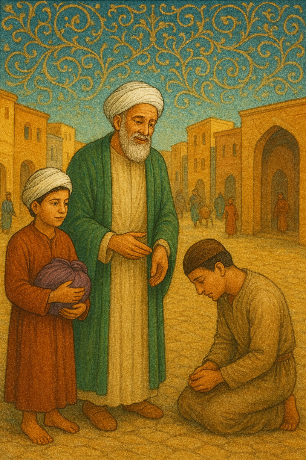 “Tolong berikan ini kepada pemuda itu dan katakan kepadanya,” beliau berpesan, “Abȗ Yazȋd memohon maaf. Katakan kepadanya, ‘tadi malam engkau memukul kepala Abu Yazid dengan kecapimu hingga kecapi itu patah. Dia meminta engkau menerima uang ini sebagai ganti rugi untuk membeli kecapi yang baru. Dan manisan ini untuk menghibur hatimu yang sedih karena kecapimu rusak.”